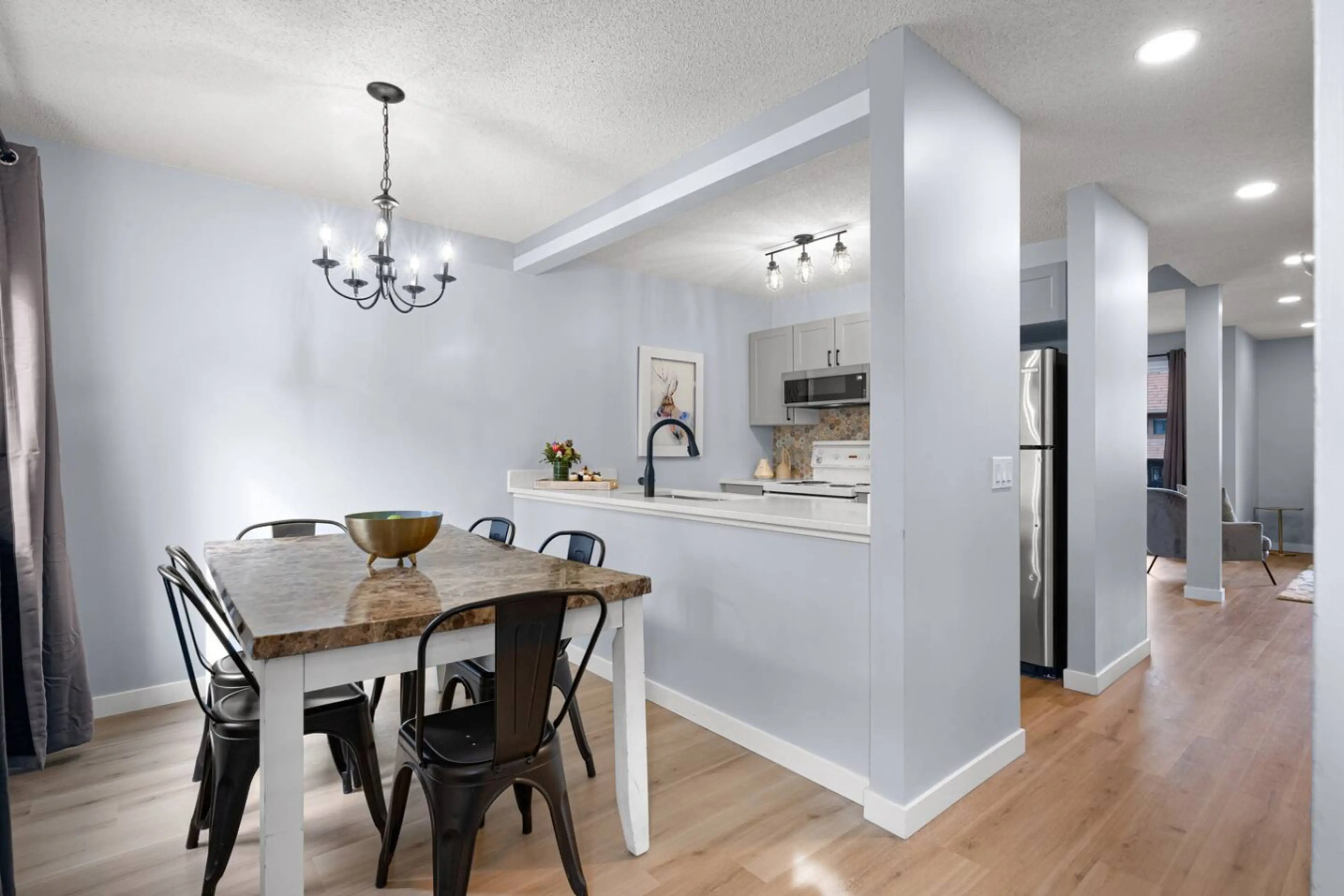 We were in Canmore to attend a family wedding. We had six adults and two children under three years old. The unit accommodated us quite comfortably. The location was great and the hosts are excellent communicators. Thank you Steve and Tina !